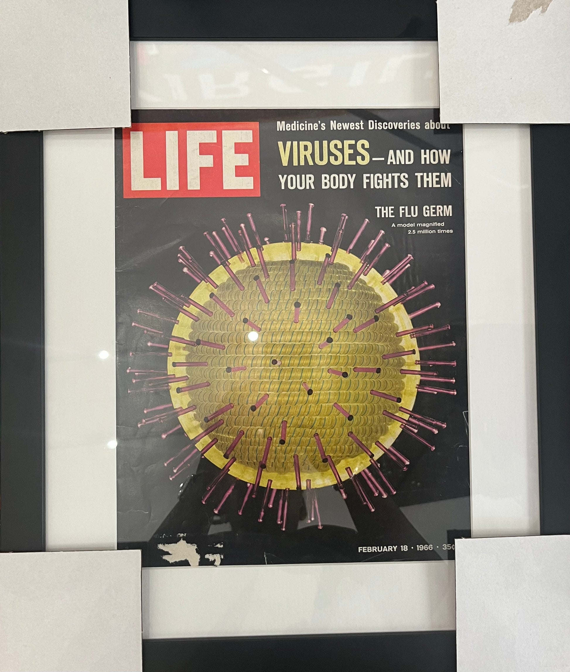 Information: Life Magazine's issue about the Flu virus, and its closest view yet, full magazine enclosed in frame released in 1966.