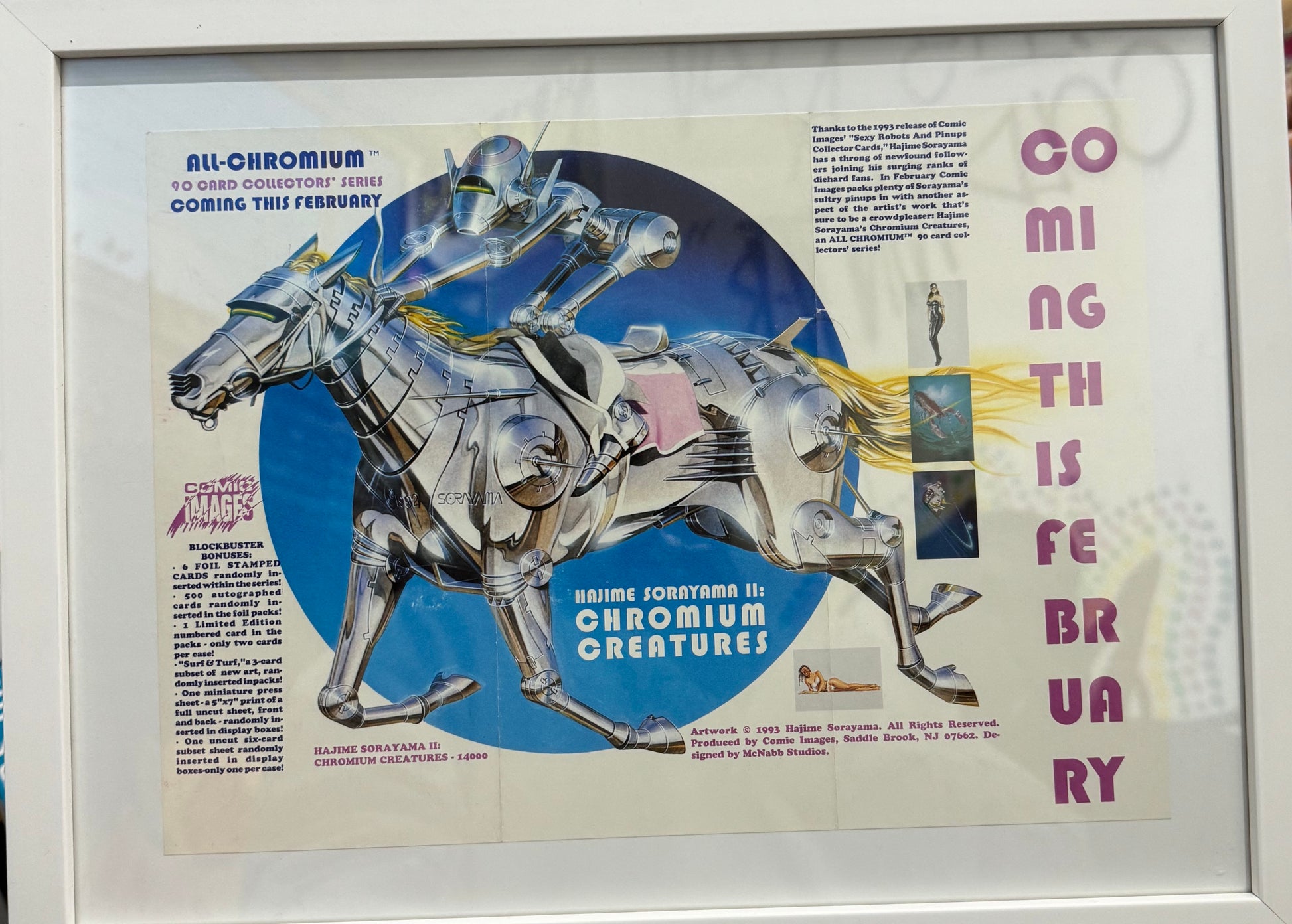 Promotional Poster for 1993's Sorayama Chromium Card Deck Release. This item was not for sale at time of release, was only sent to potential wholesalers of the card decks.
