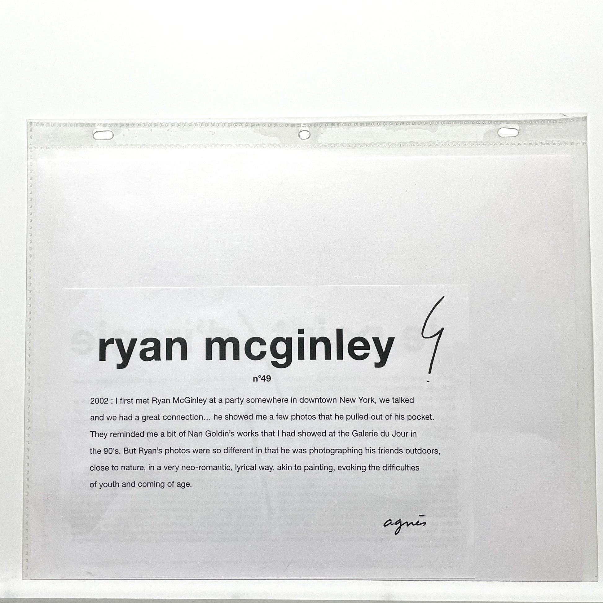 The Point d’Ironie originated following a discussion between agnès b., Christian Boltanski and Hans Ulrich Obrist in 1997. Six to eight issues are published every year, each one designed by an artist who makes it his own. This poster accompanied Ryan McGinley's 2002 Edition. Comes with information on back of frame and can be reframed to expose entire page (printed front and back)