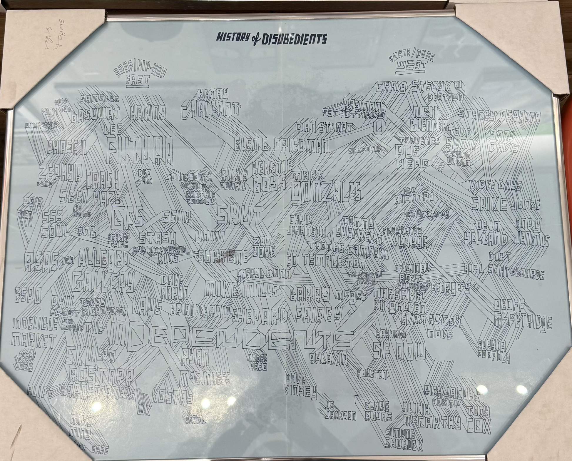 About: Limited Edition Arkitip publication insert by Kevin Lyons displaying the web of creative 'Disobedients'- a number of tastemakers from the East & West