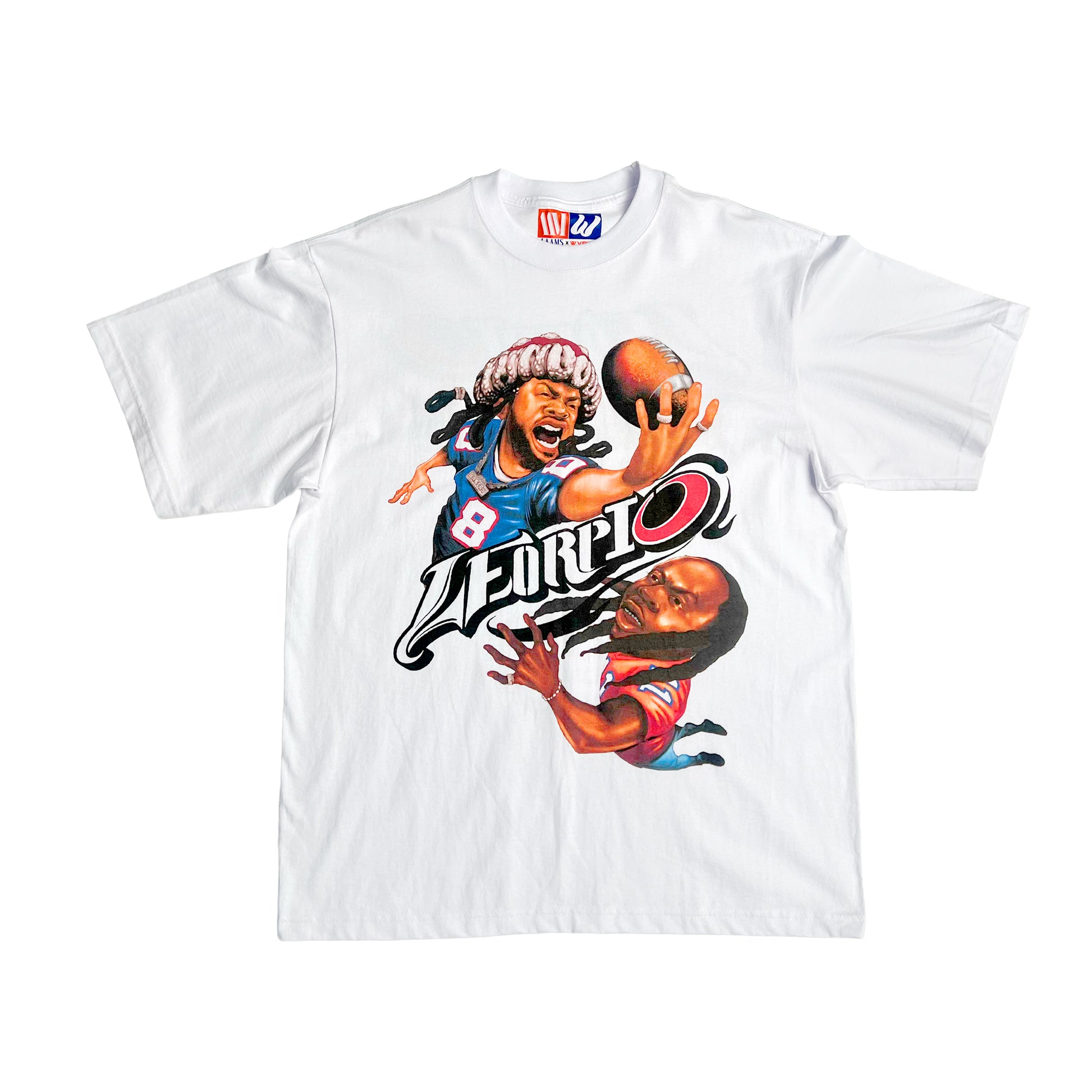 A collaborative tee from LAAMS celebrating LEORPIO Album Release. Featuring Dram and Ellis Quinn in NFL Street and a full LEORPIO tracklist.