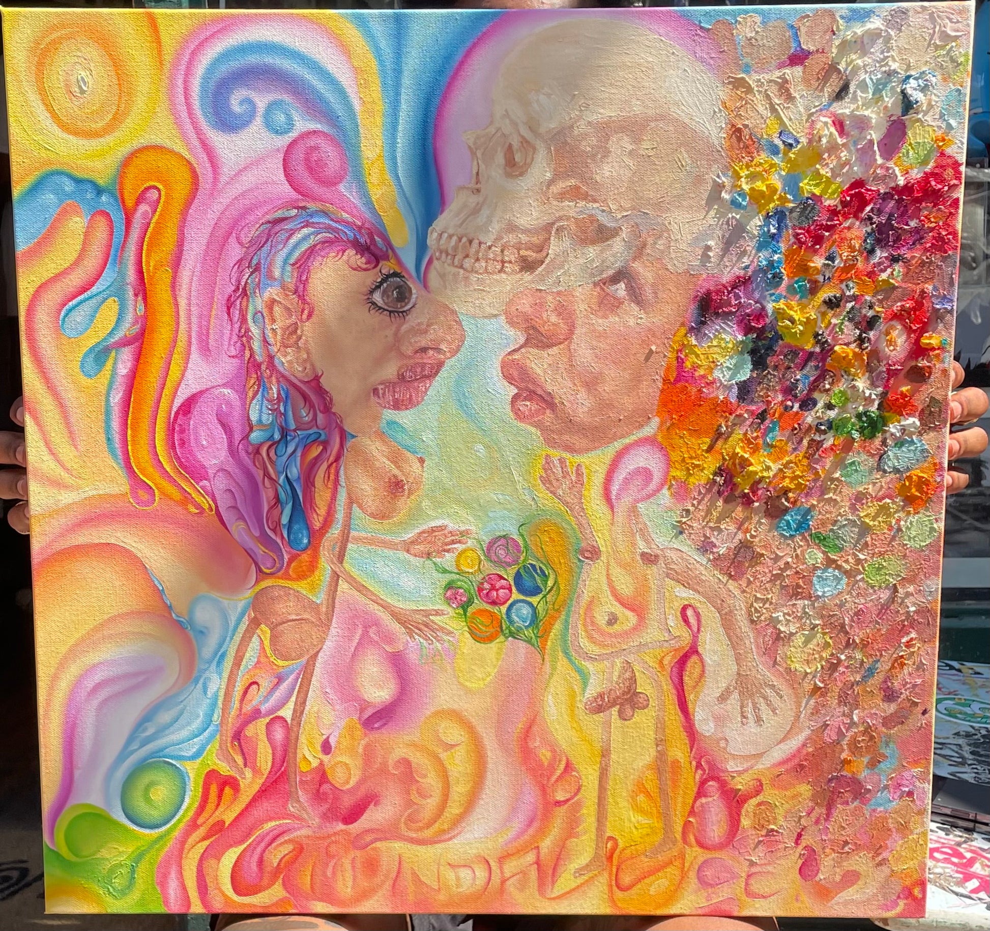 "Overthinking is the death of creativity. This piece represents finding balance between creating for the simple love of expression and creating for the observer. Through self reflection, I've been learning to let go and not overthink- simply creating, hoping for the best and trusting my own process."