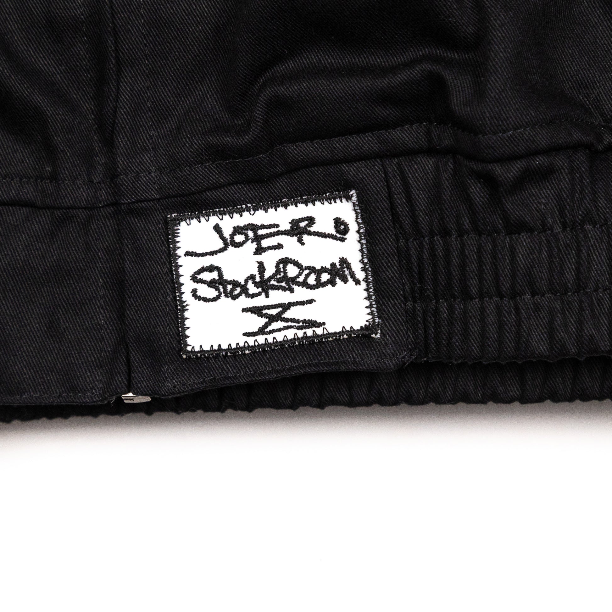 -"JOERO STOCKROOM X" PATCH ON FRONT BOTTOM HEM