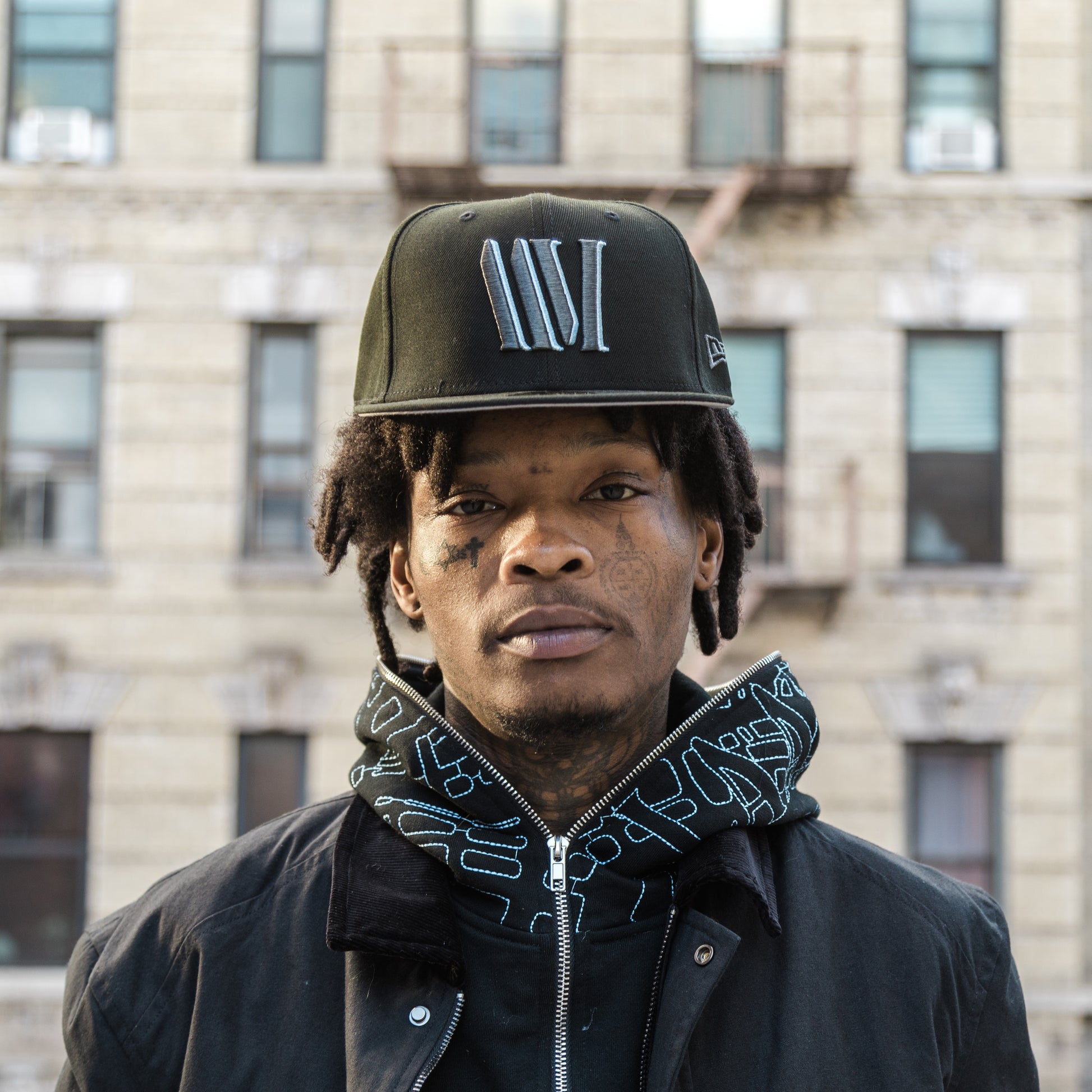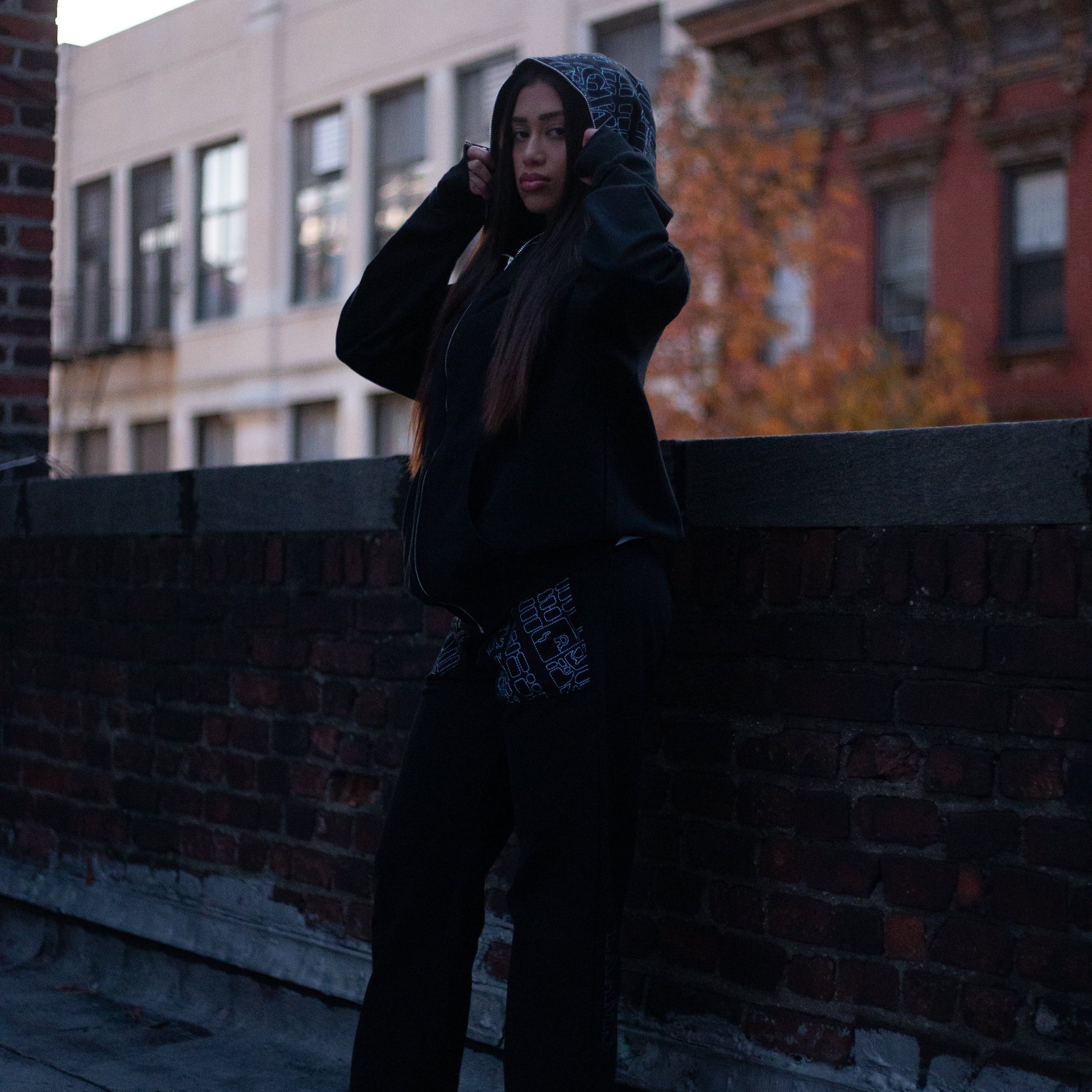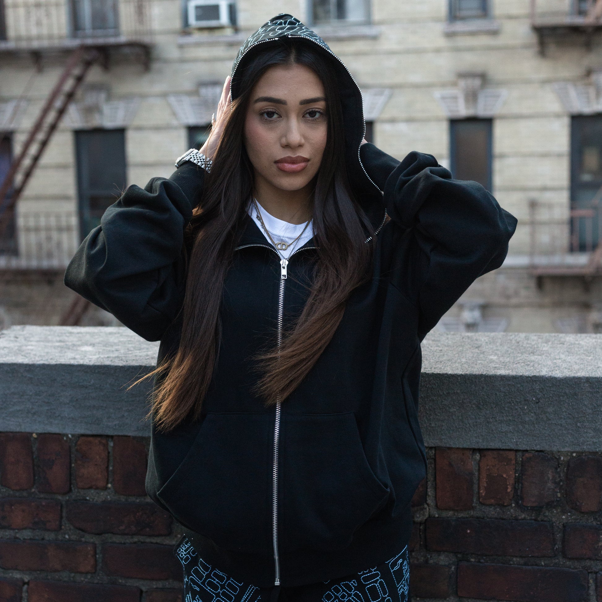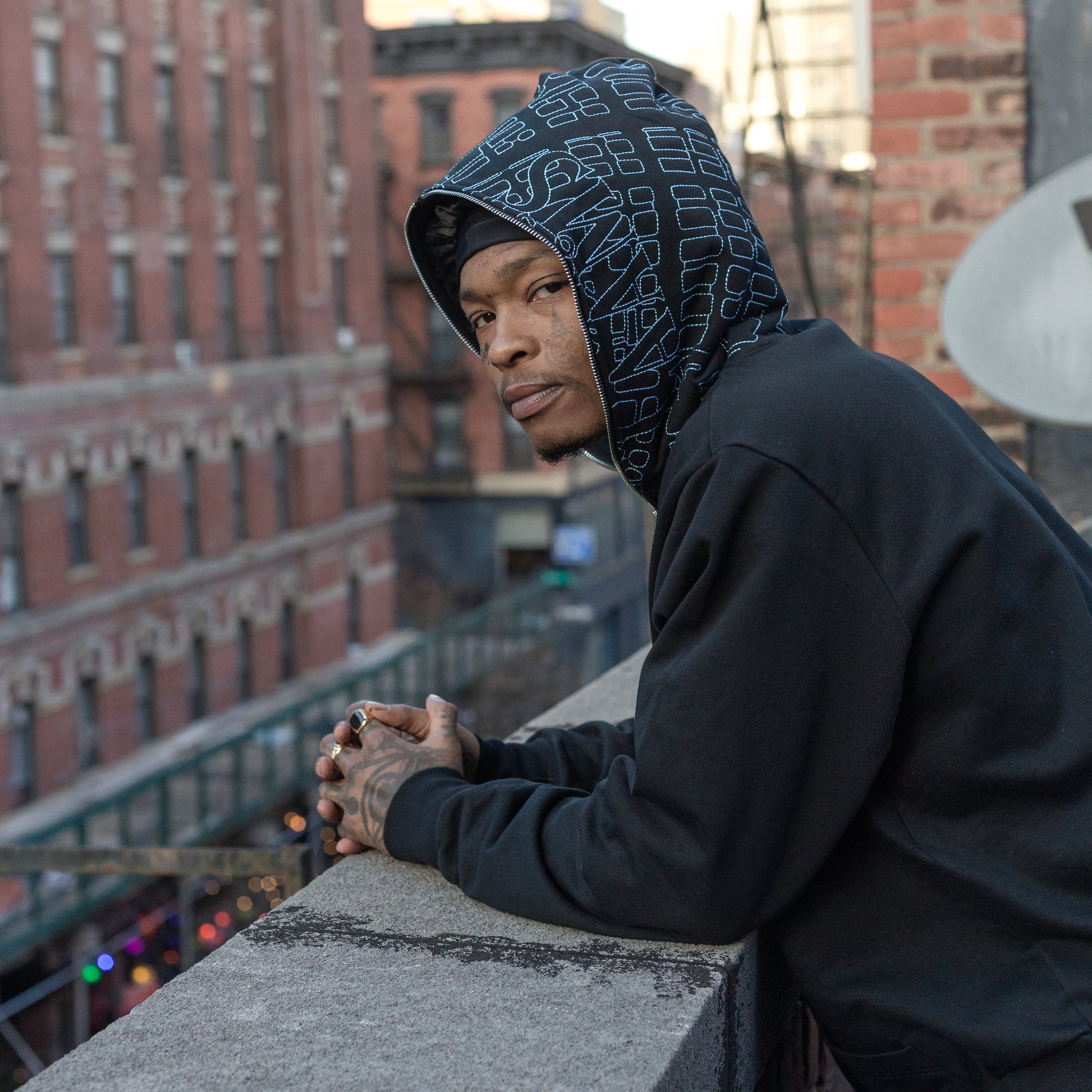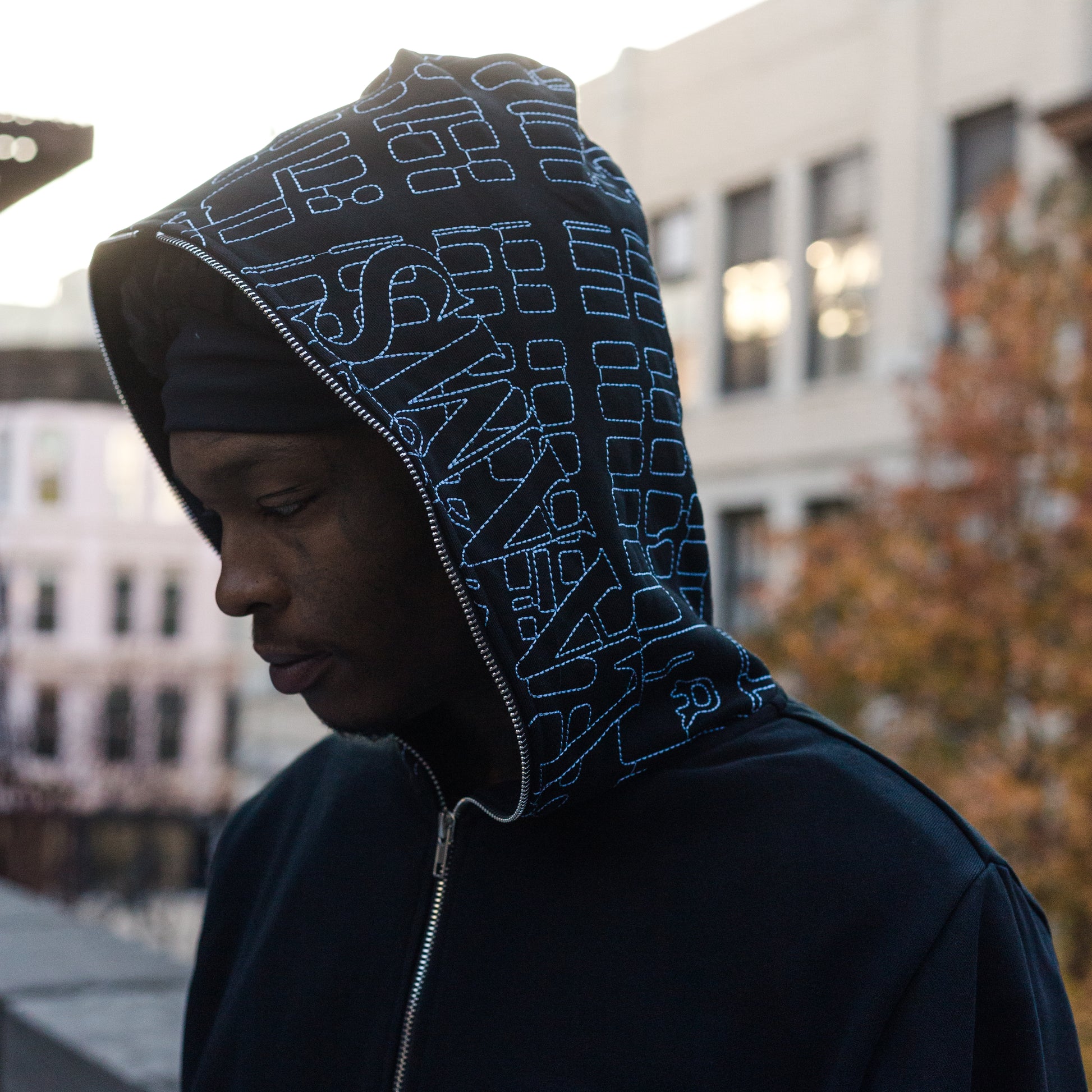 - LES Map Embroidered On Hood in Baby Blue