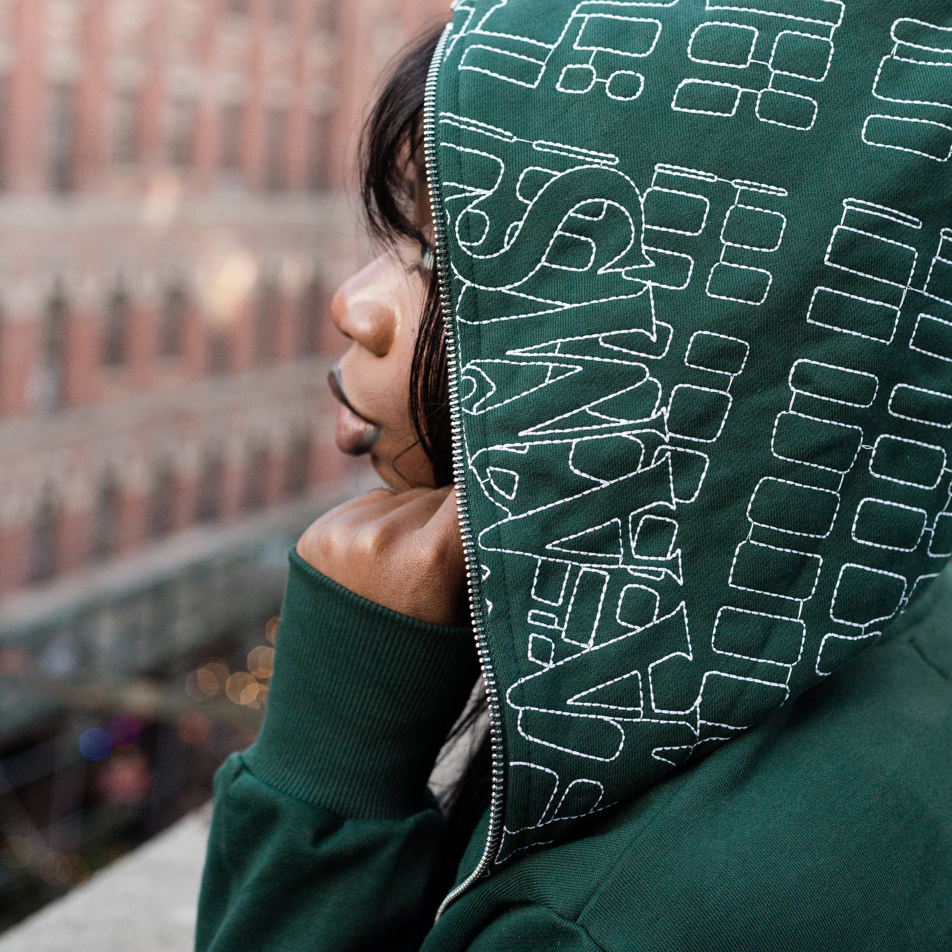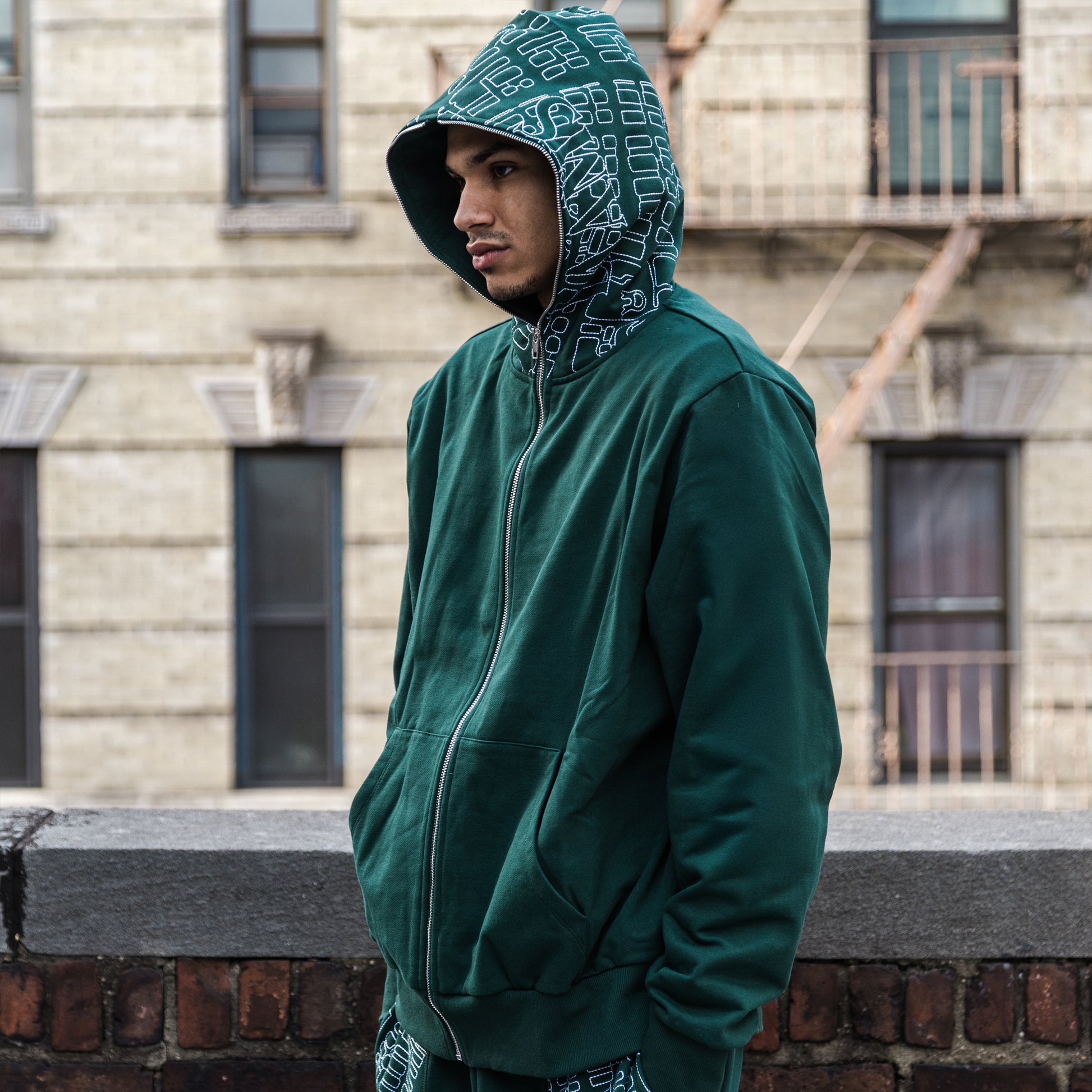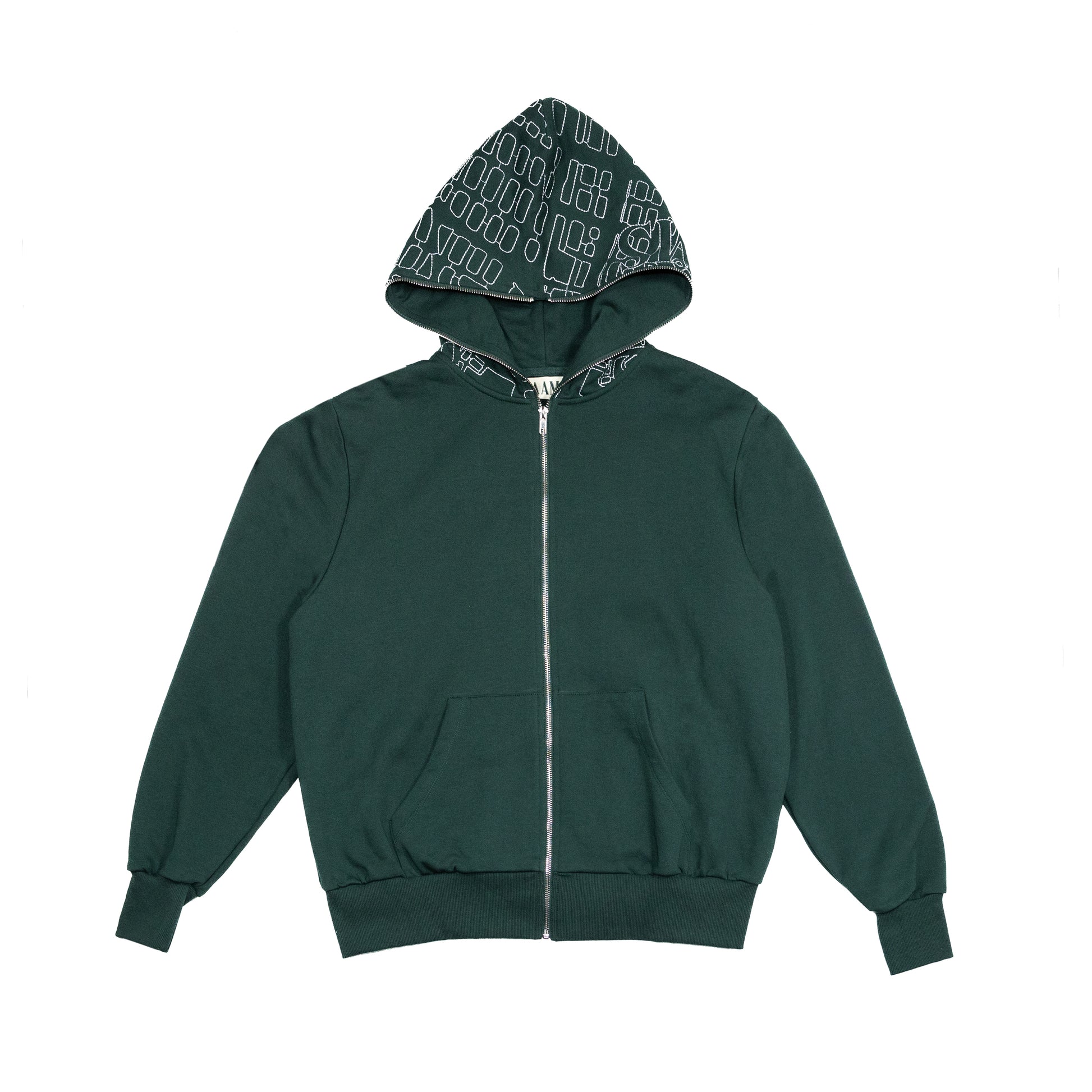 - 100% Cotton French Terry Green Zip Up Sweatshirt