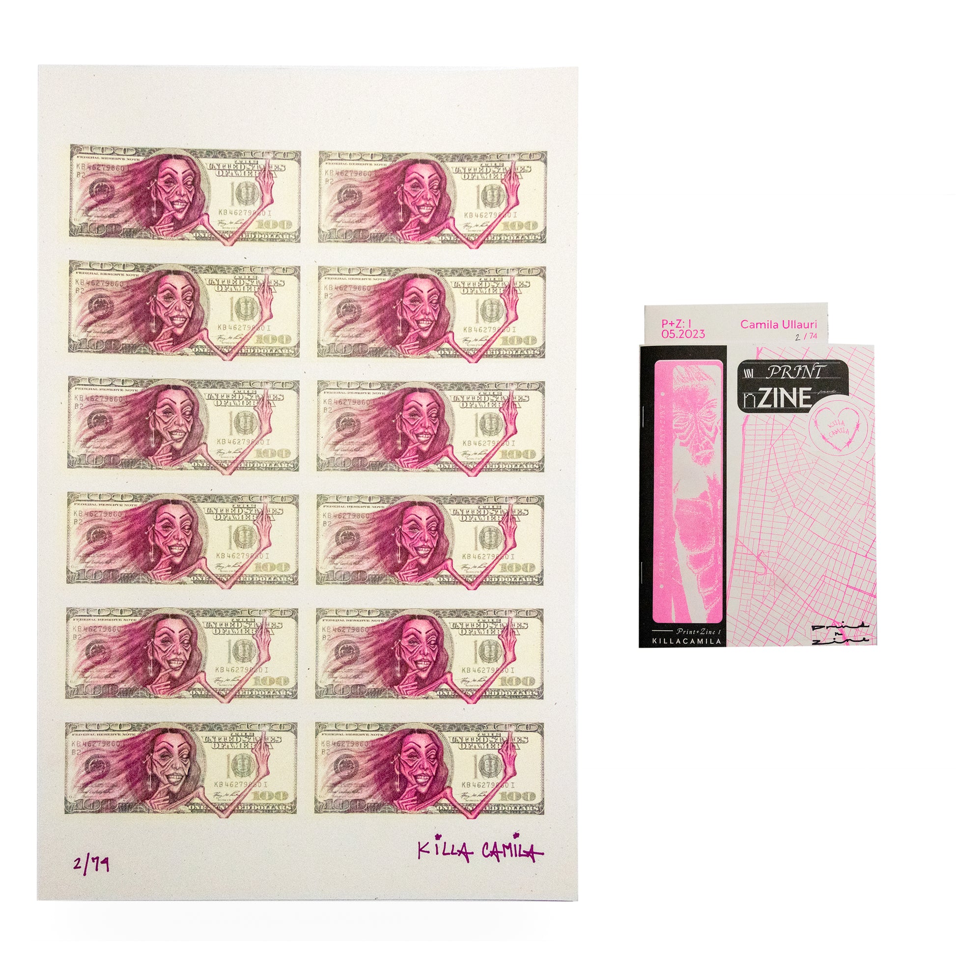 Each edition comes with a Riso Print, signed and numbered edition of 74 by the artist, with a corresponding Zine, featuring the artists’ work and some info about who they are, where their inspirations come from and how they like to work.