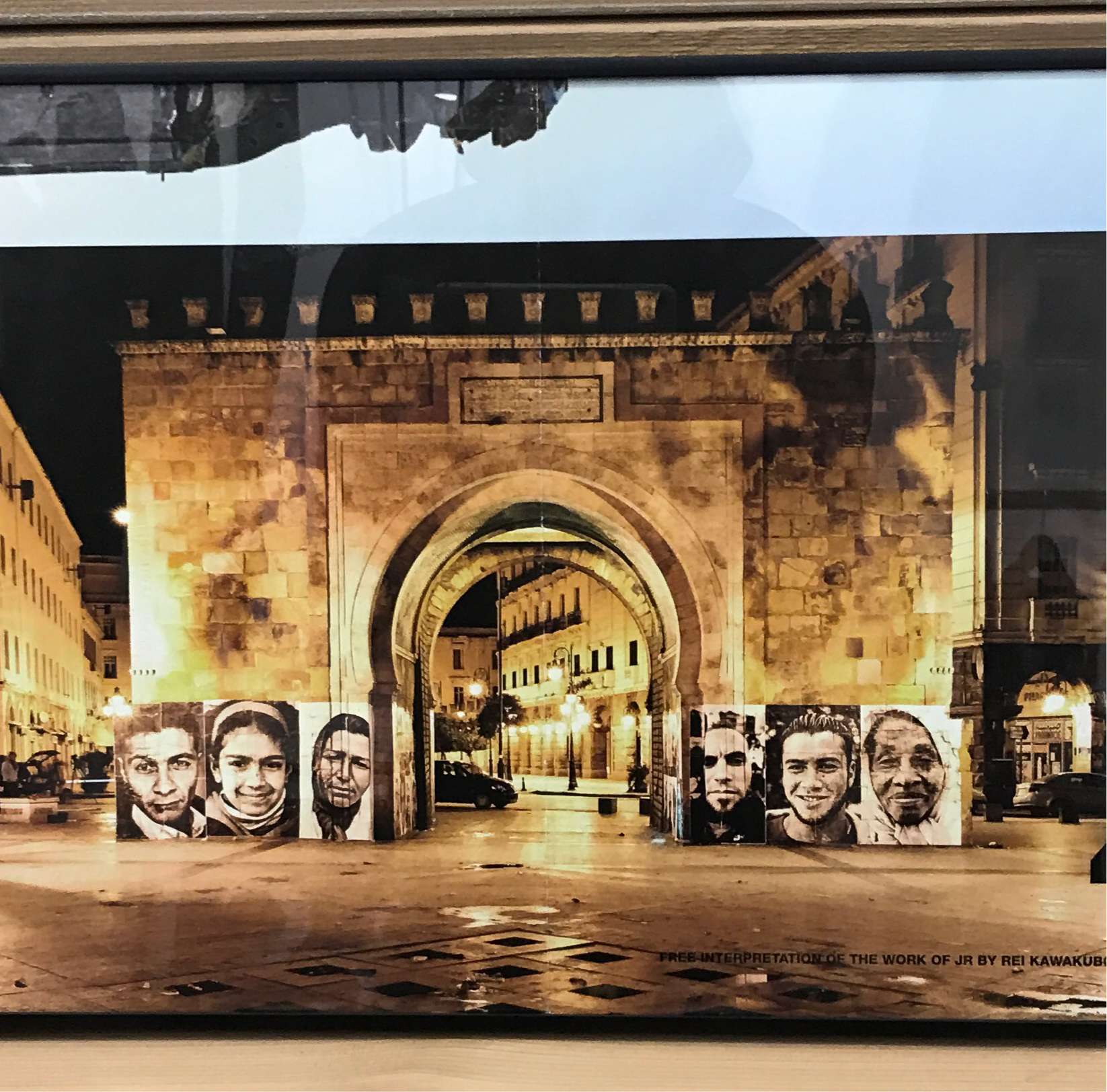 Framed page of Comme Des Garcon Zine release featuring artist JR & his work in Tunisia.